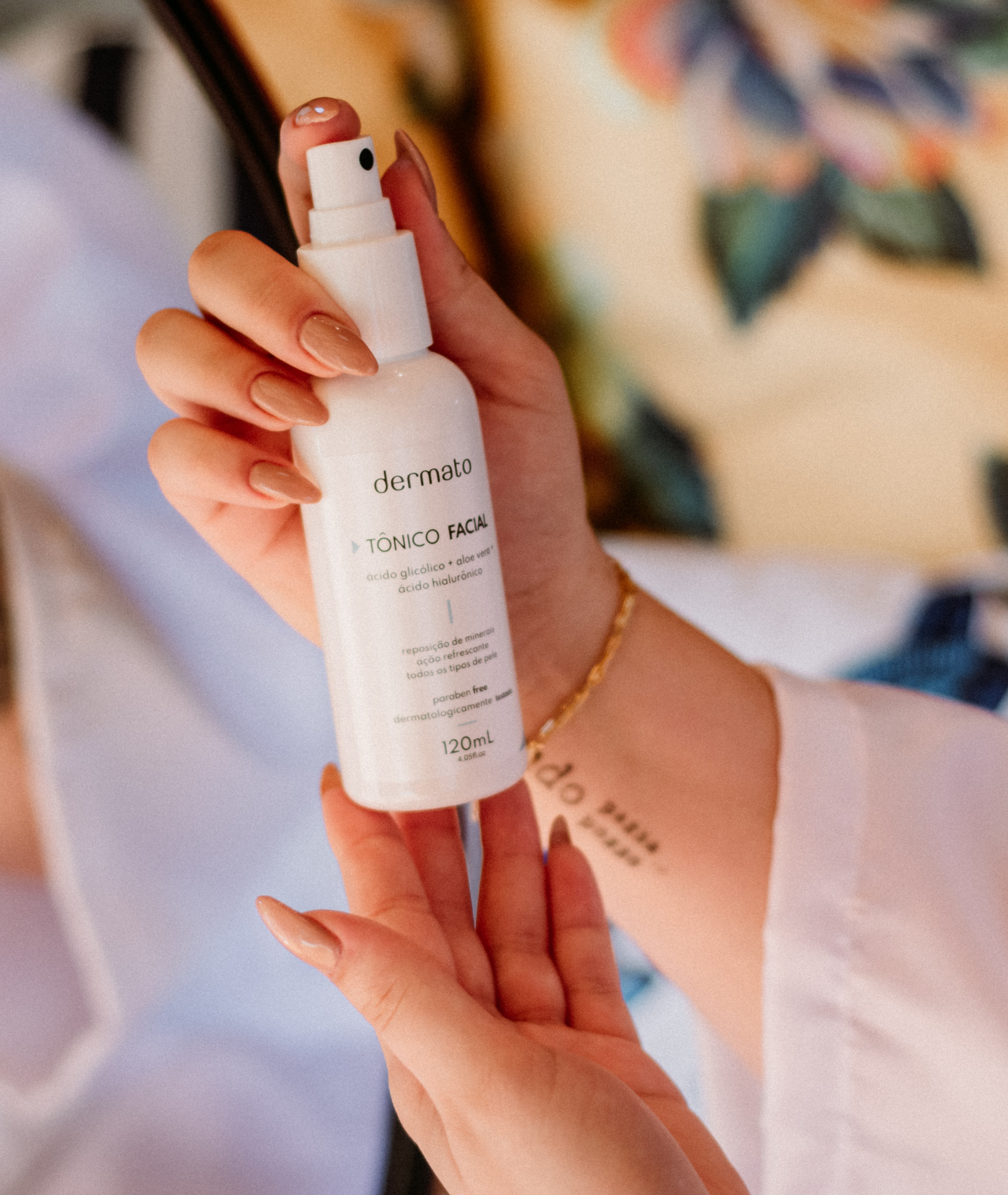 O Tônico Facial Dermato foi desenvolvido para equilibrar, refrescar e preparar a pele para a rotina de cuidados. Sua fórmula combina ácido glicólico, aloe vera e ácido hialurônico, garantindo ação hidratante, renovadora e calmante — ideal para todos os tipos de pele.